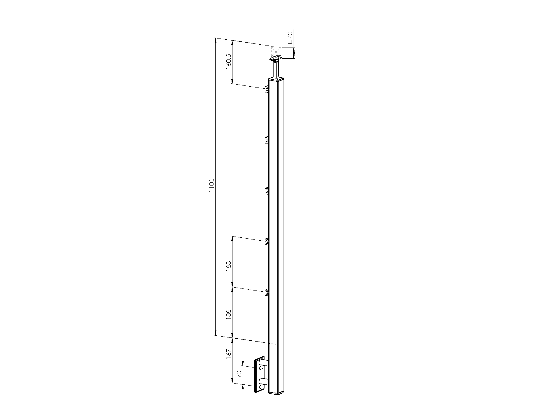 5 pcsMatérielInox AISI 304Finition de surfacesatinéRemplissage10x10Articles demandésPiquet, ancrage latéral - pour escaliers AISI304, 40x40x2 AJP-BS100-5D12