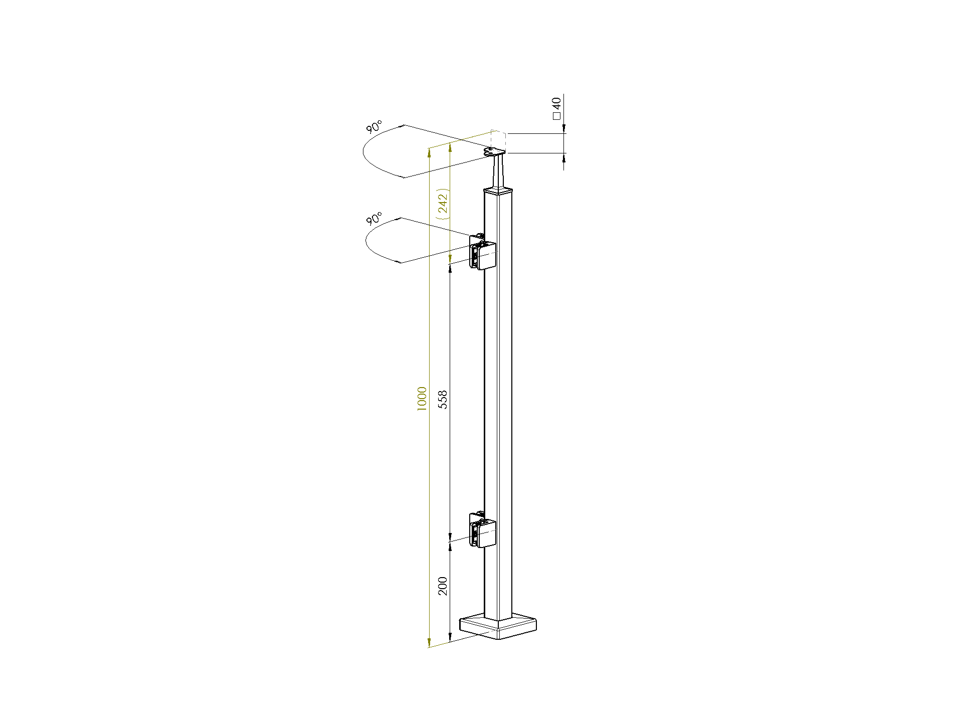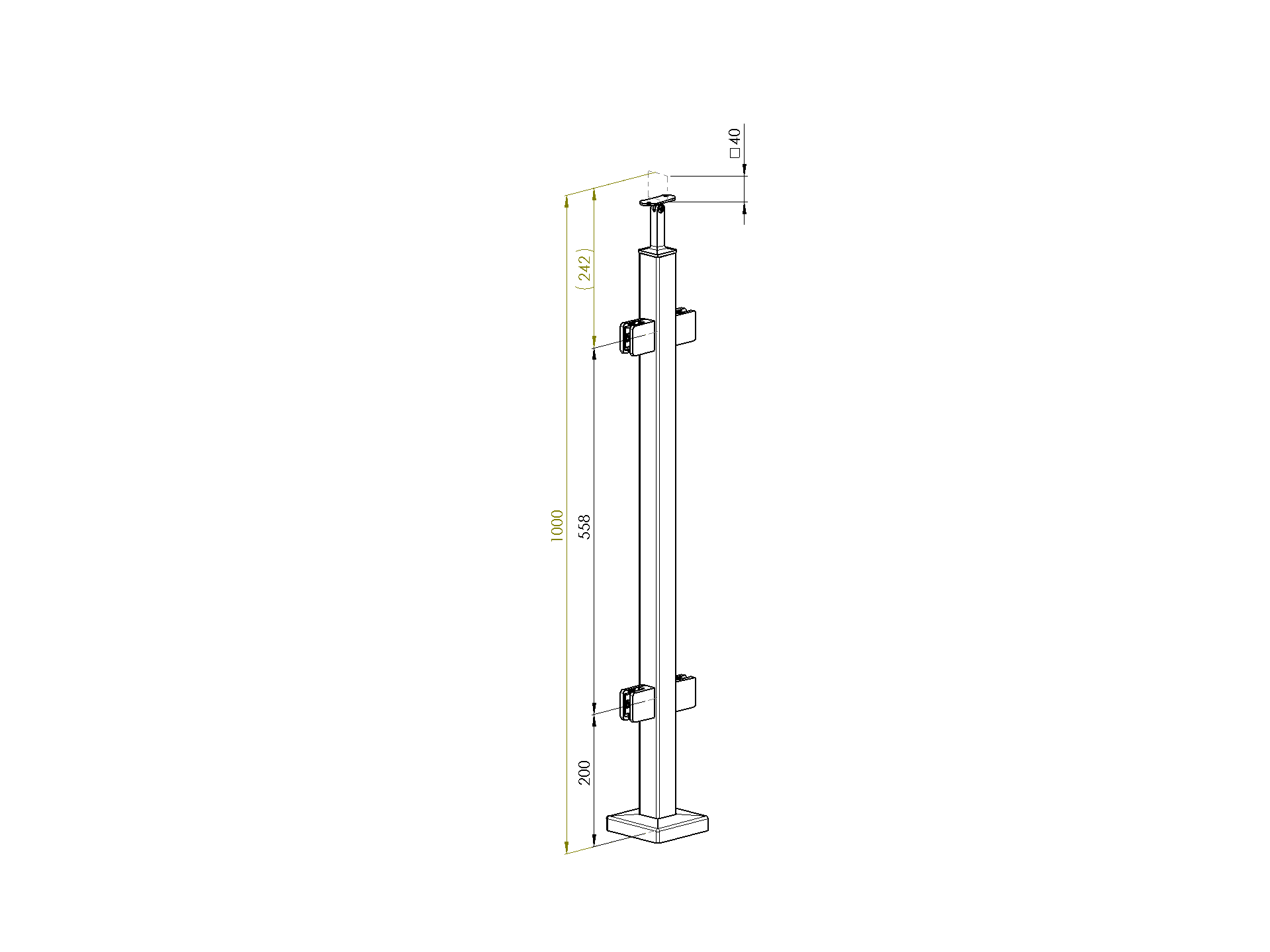 Poteau, ancrage supérieur - droit AISI304, 40x40x2/2 AJP-VR100-2GR