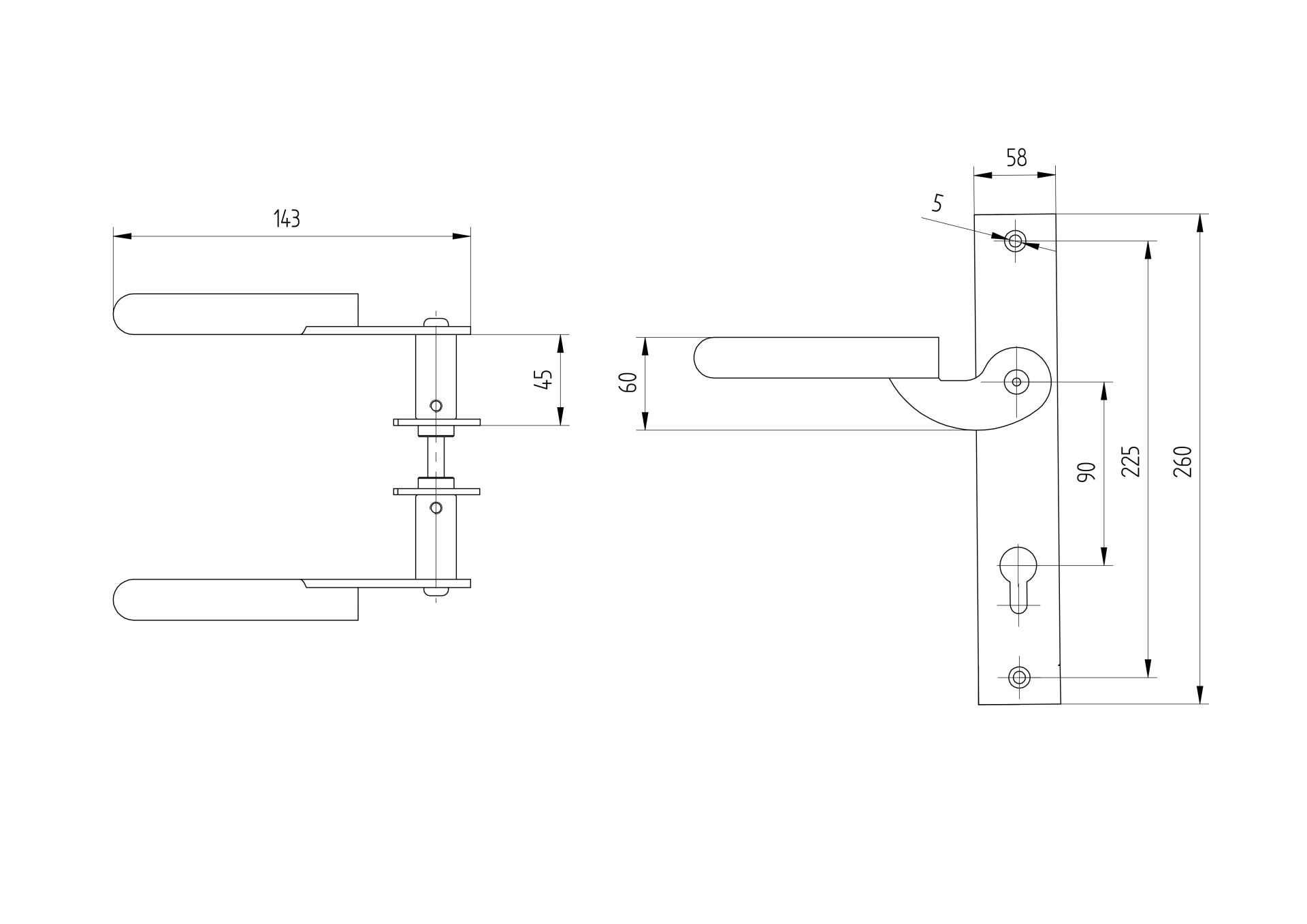 1 pcsMatérielAcierFinition de surfaceBrutDistance axiale90mmPoignée avec plaque droite h260, b60, t3mm D12/07R-90