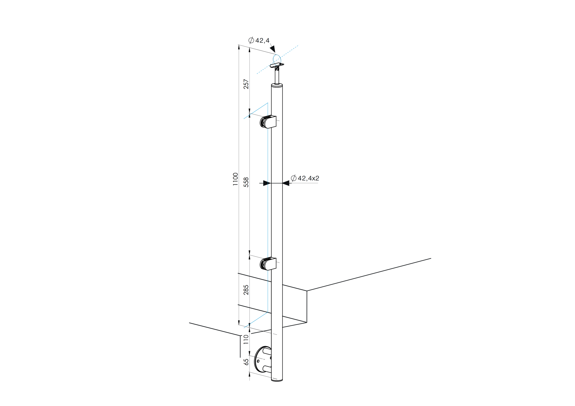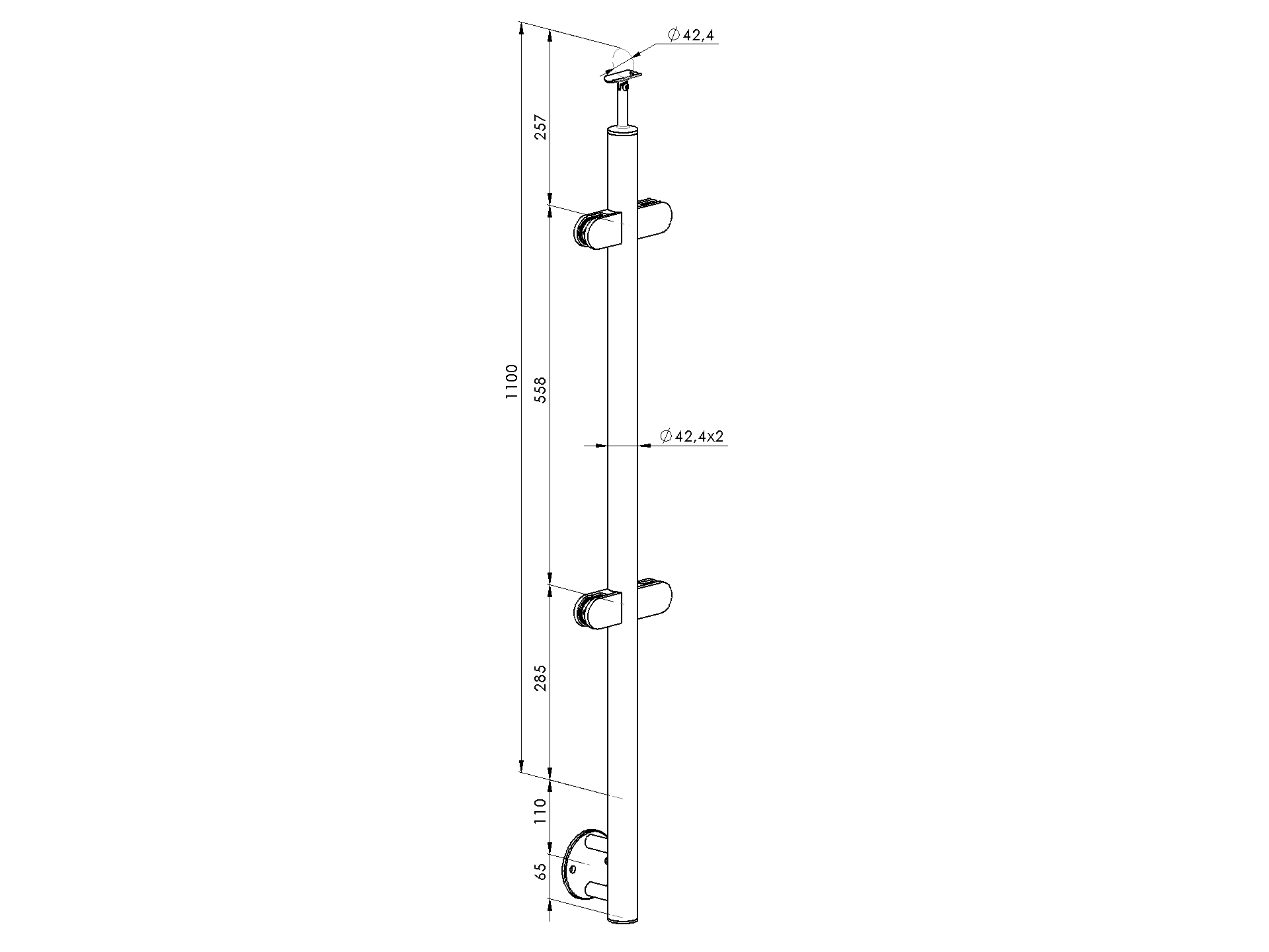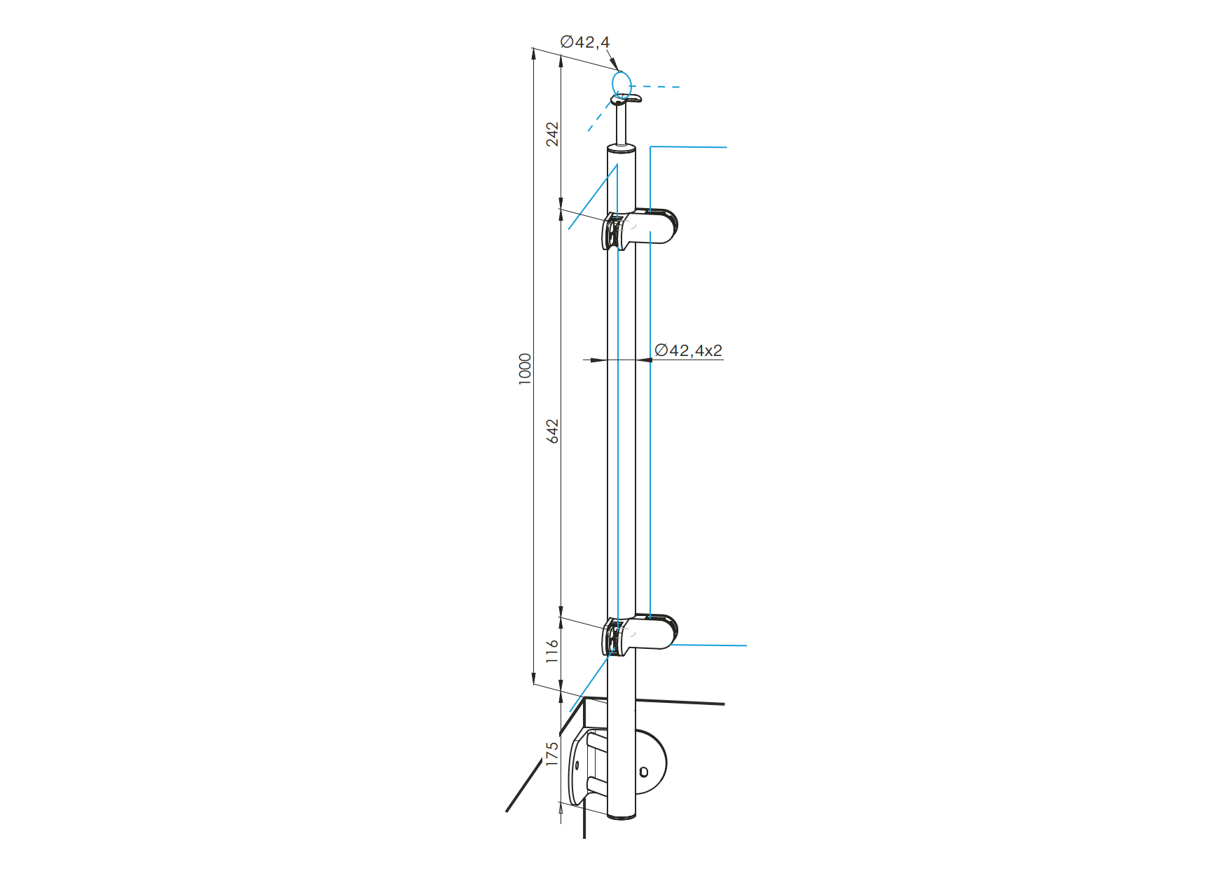 1 pcsMatérielInox AISI 304Finition de surfacesatinéPosteD42,4x2Support de main courante A/0718-242