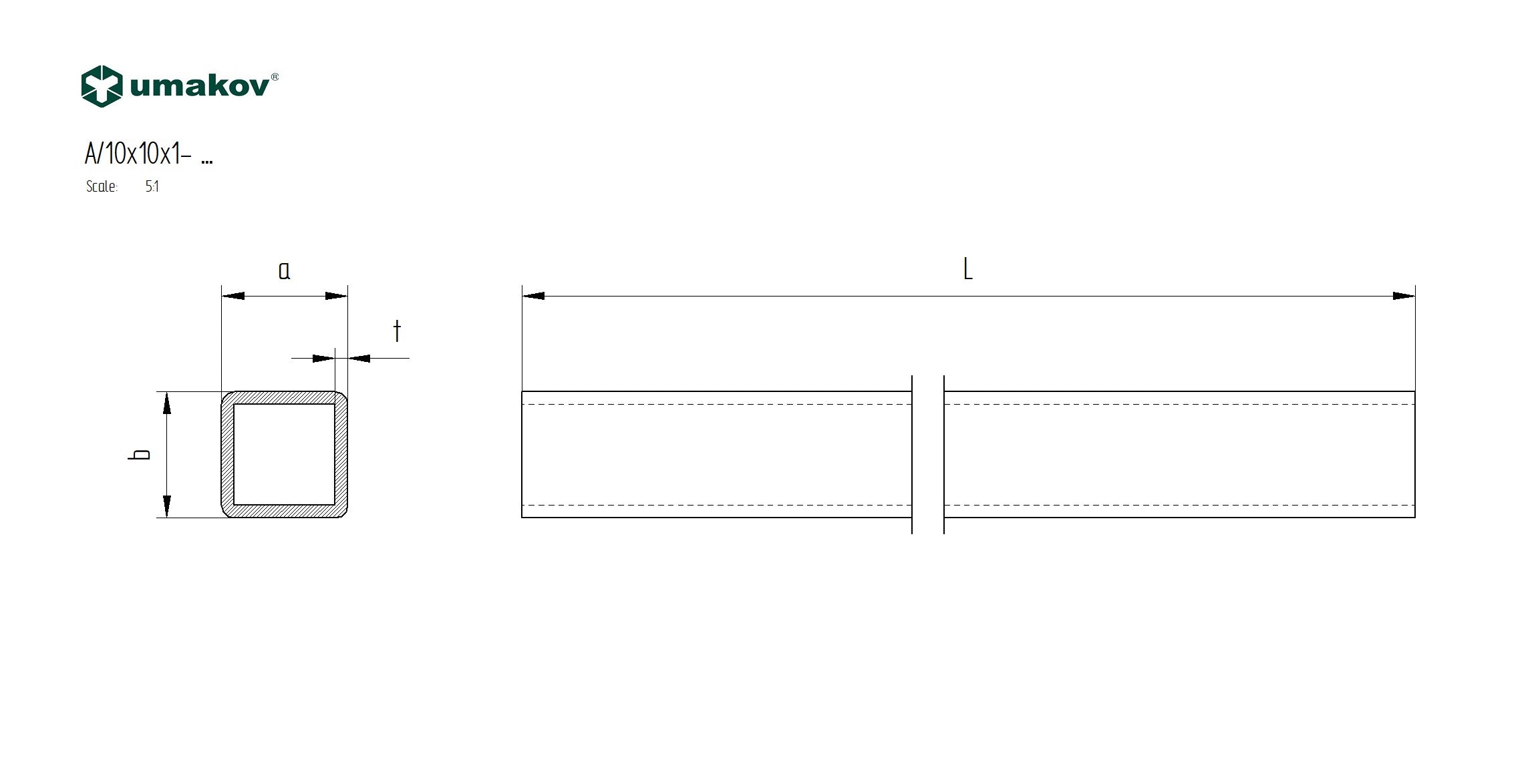 Profil carré en acier inoxydable, A/12x12x1-6000