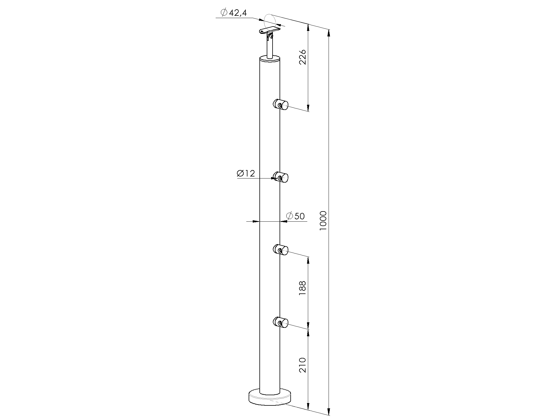 1 pcsMatérielInox AISI 304Finition de surfaceBrutPosteD42,4x2Articles demandésPoteau, ancrage supérieur - pour escalier AISI304, D4 A-VS100-5D12-L