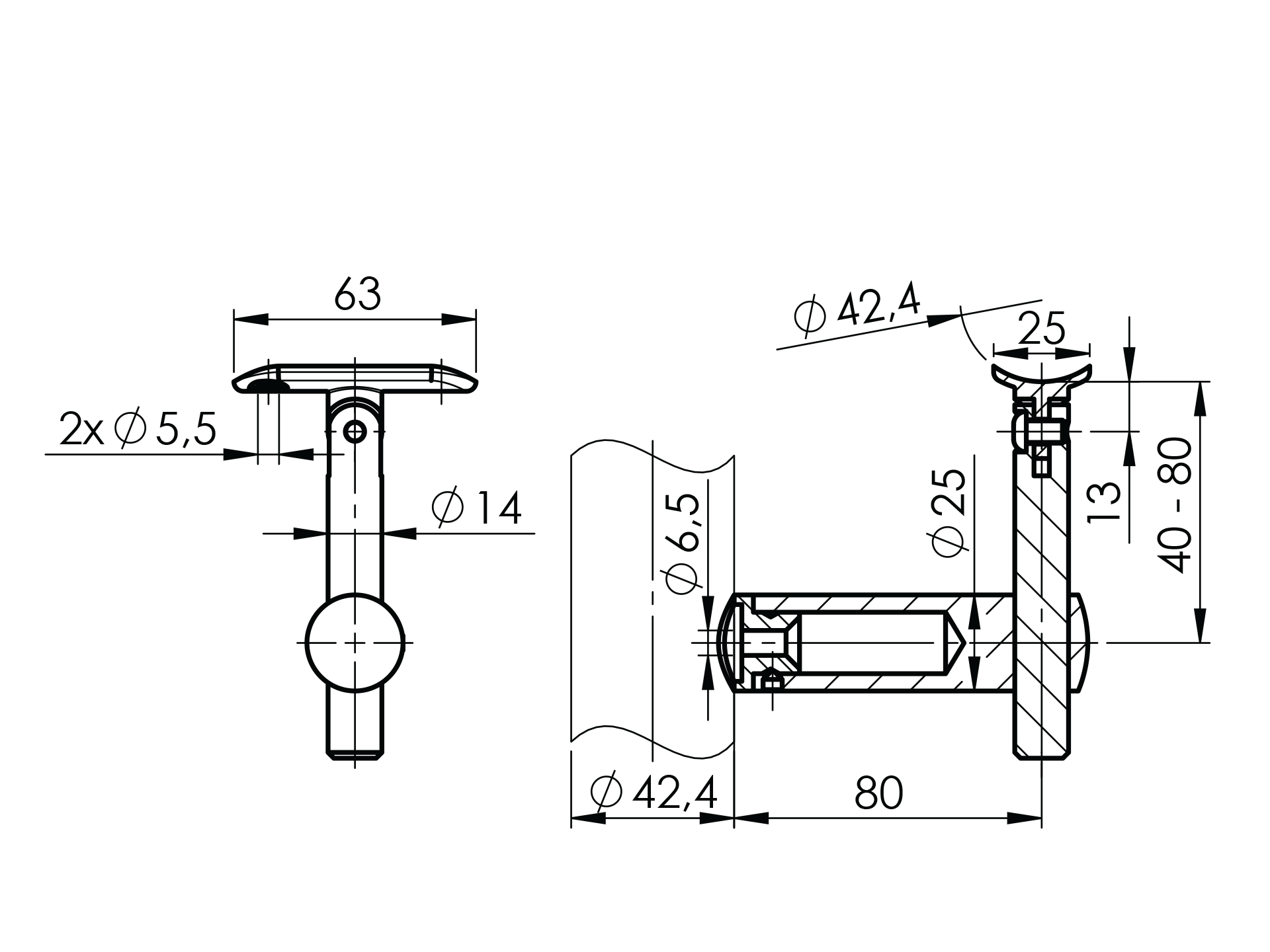 Support de main courante hors axe A/0135-042