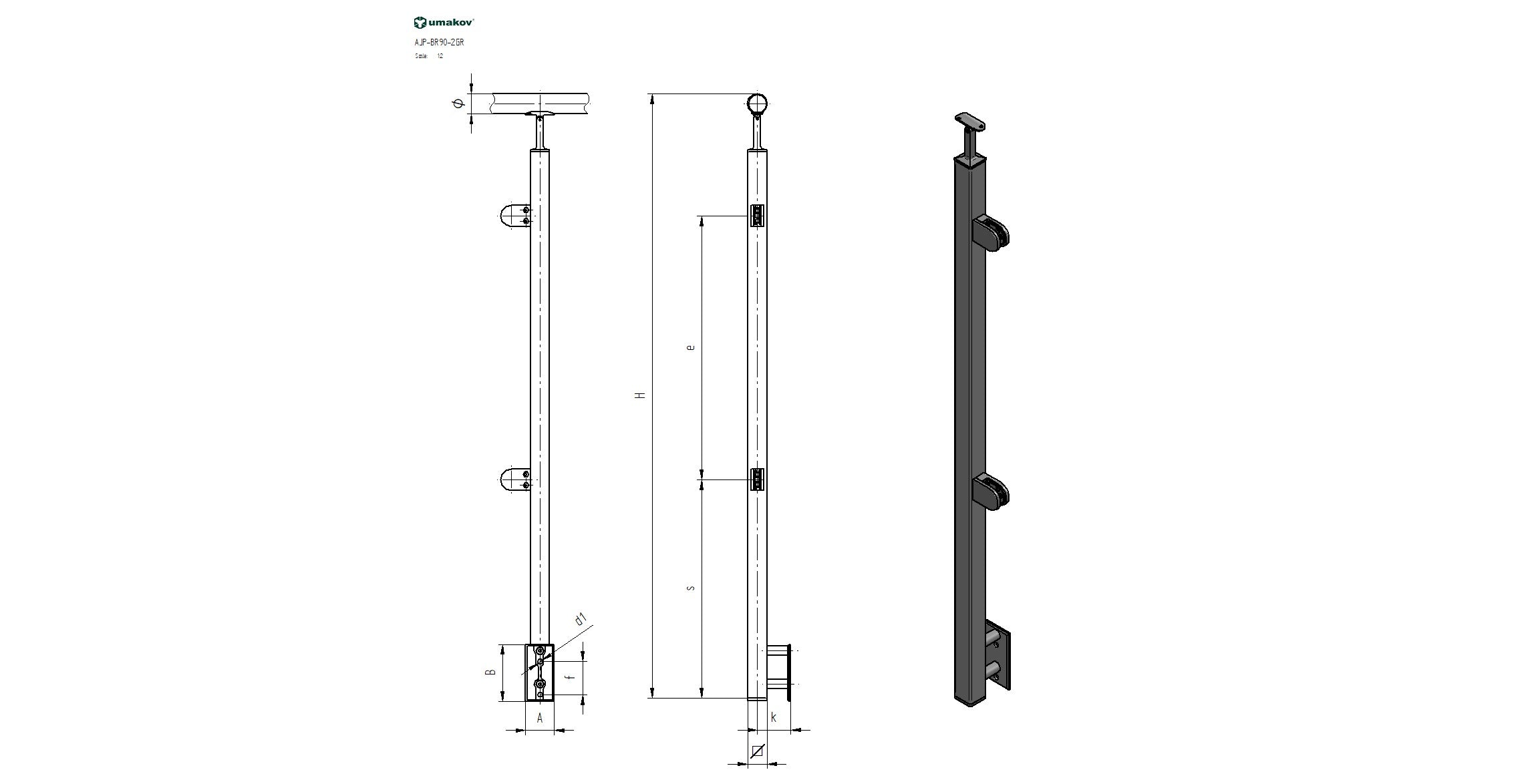 Pfosten, Seitenverankurung - rechts - grade AISI30 AJP-BR100-2GR