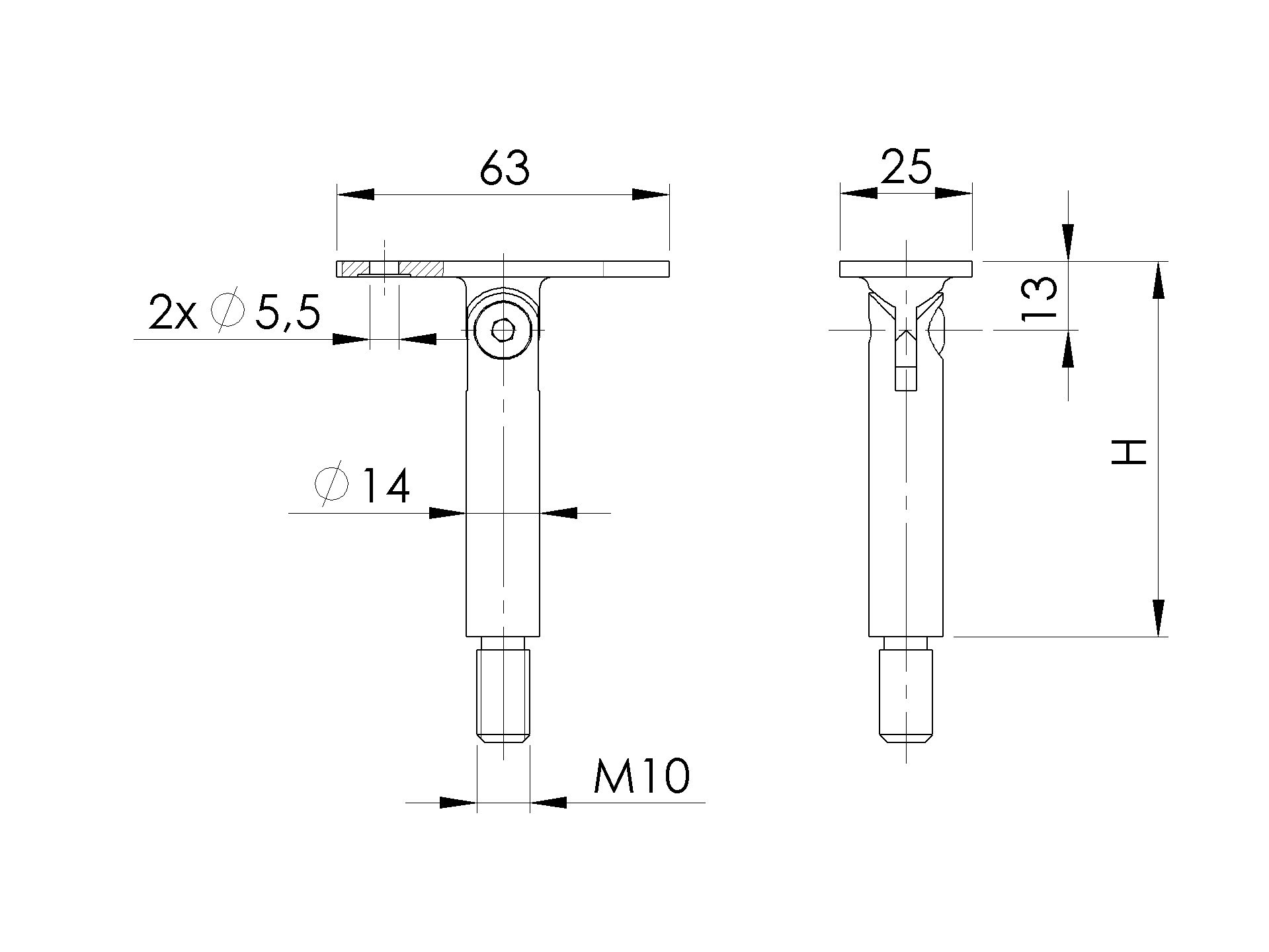 Handlaufhalter für Pfosten AISI304, 40x40x2/M10mm A/0818-000-B-L