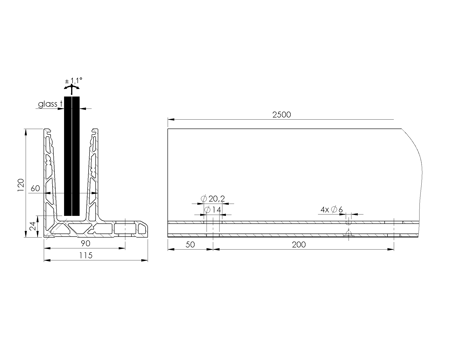 MaterialAluminiumOberflächengüteSatin-ELOXGlass t12,00-21,52Erforderliches ZubehörLagerverfügbarkeit