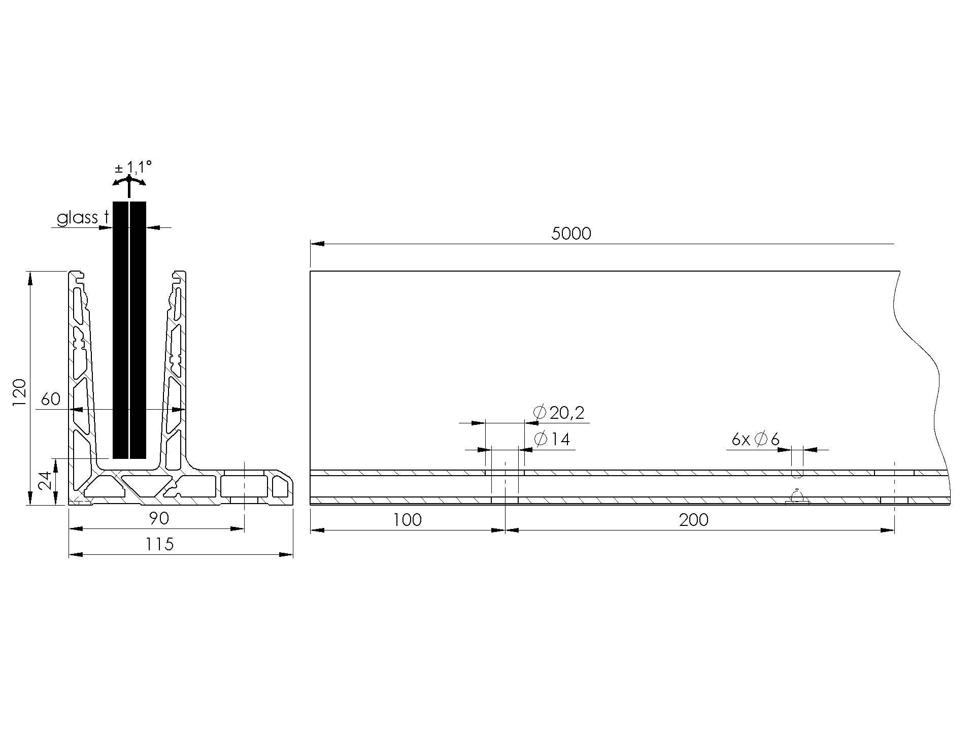 Niedrigster Preis in den letzten 30 Tagen: €494,23 ohne MwSt.Auf Lager (529 Einheiten)Alluminiumprofil für Glasgeländer 2500x1000mm AL/ZVR100-2500-006-UNO