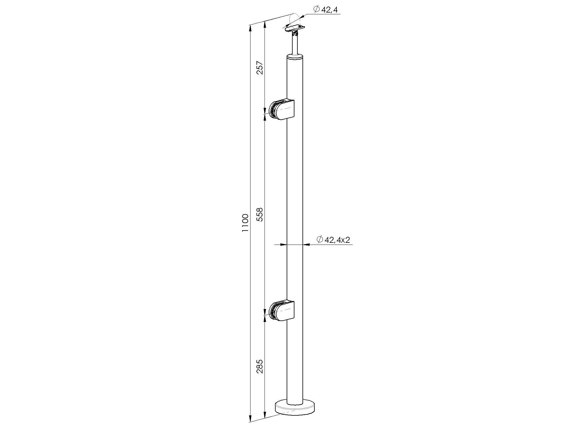 1 Stk.MaterialEdelstahl AISI 304OberflächengüteSchliffGeländerpfostenD42,4x2Erforderliches ZubehörEndkappe für Handlauf A/5729-242