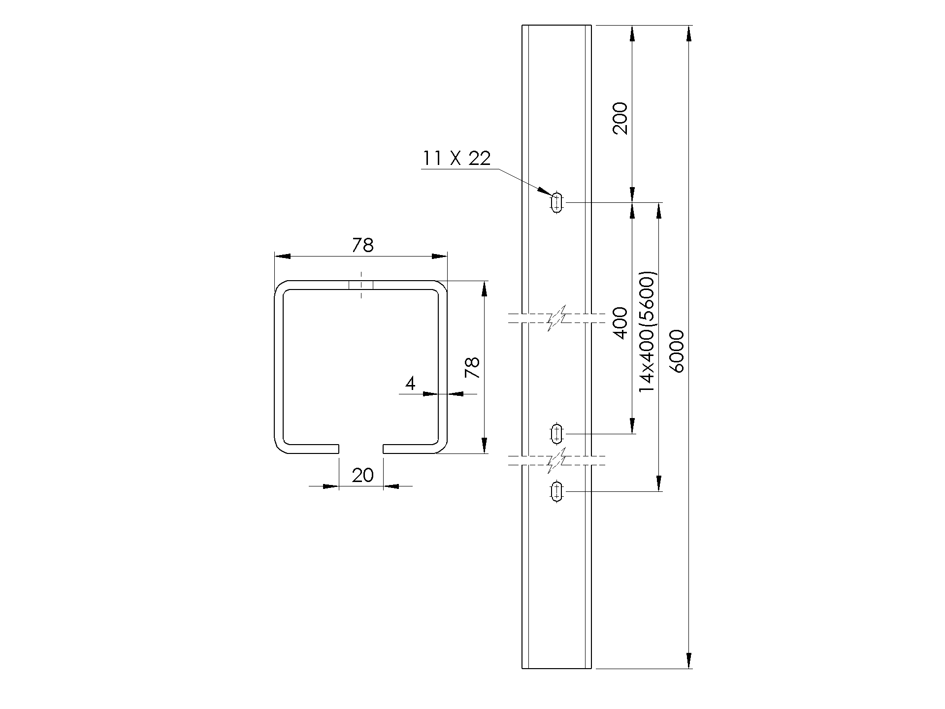 Eisenlaufschiene Zn, 78x78x4mm, L3m H/02-80x80-Zn-3000