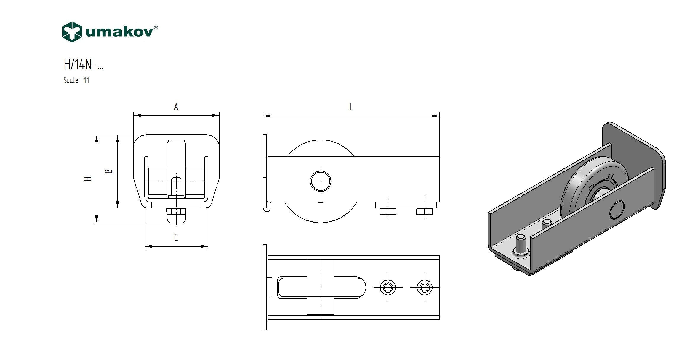 2 Stk.MaterialStahlOberflächengüteVerzinktMarkeUmakovErforderliches ZubehörEndrad für Laufschiene Zn, profile 70x60, L115mm H/14N-70x60