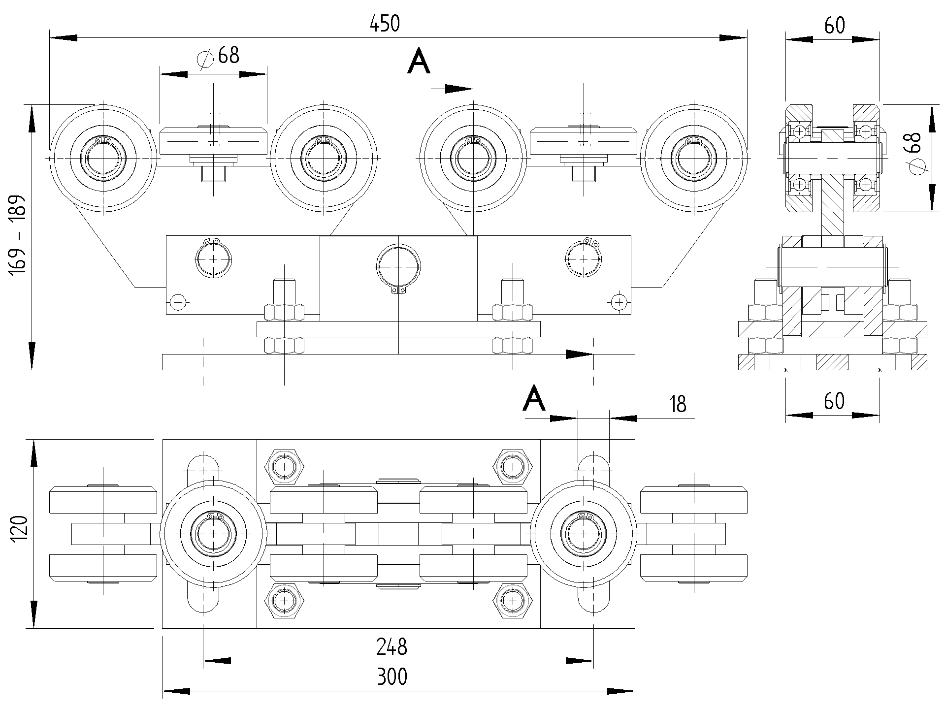 Niedrigster Preis in den letzten 30 Tagen: €117,05 ohne MwSt.Auf Lager (259 Einheiten)8-rädriger Laufwagen für selbsttragenden Tor Zn, profil 70x60mm H/34B-4-70x60