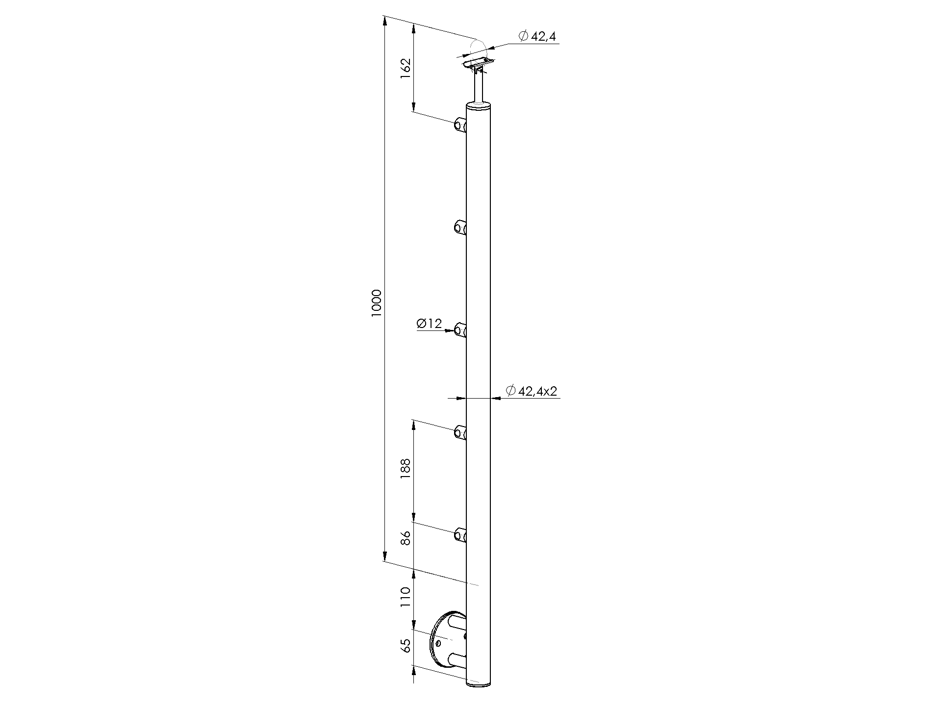 Rostfreierpfosten , VK-schlic AISI316, D42,4/5xd12 A14-VR100-5D12
