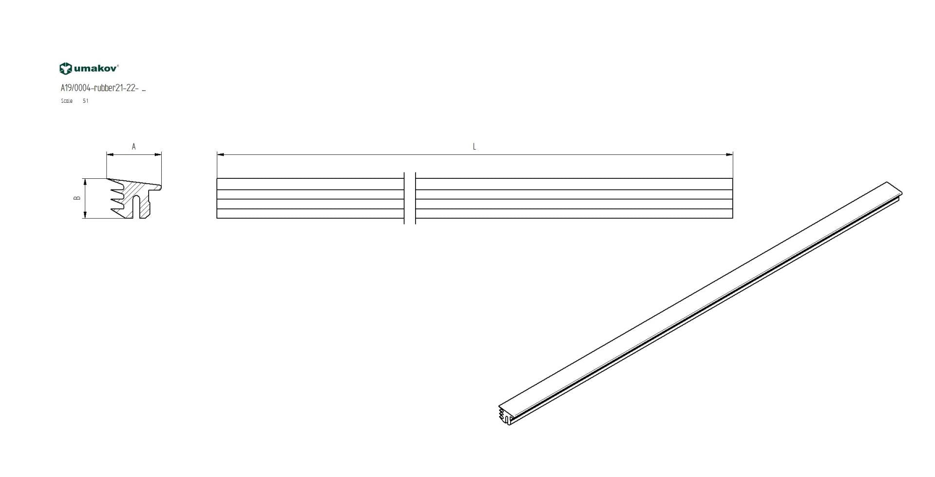 Glasdichtung für Profil A19/0004-rubber21-22-06.0