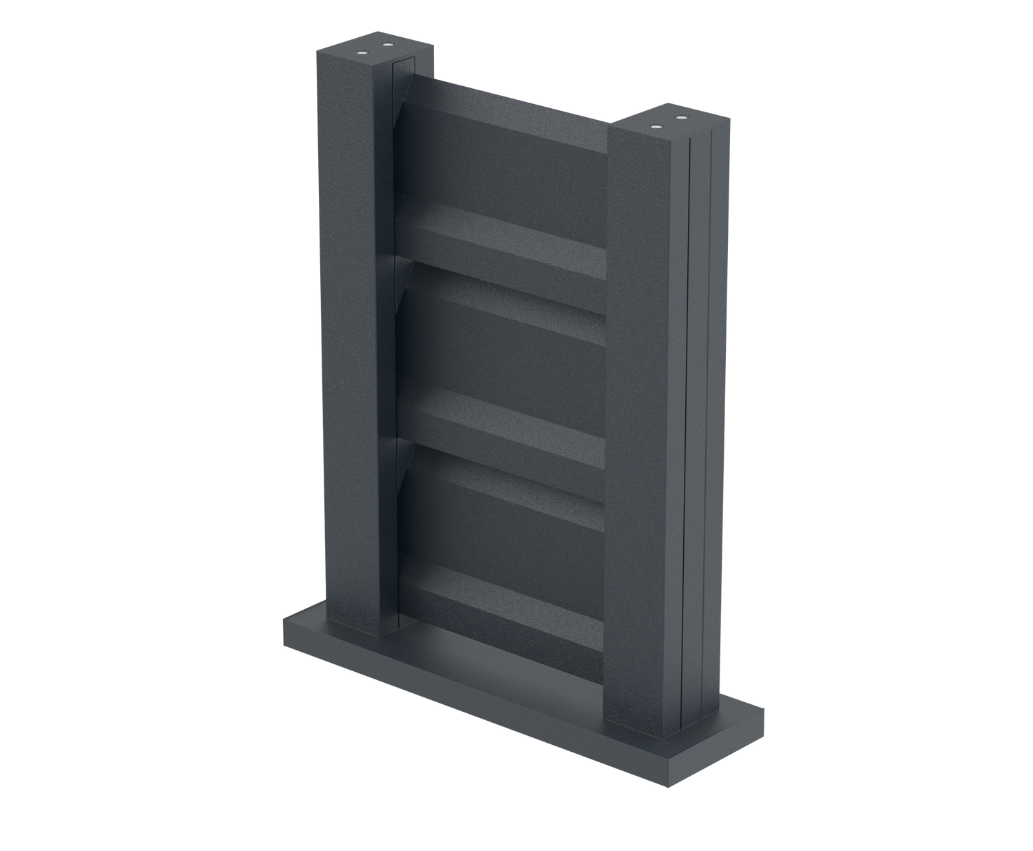 Dieses Muster des Zauns besteht aus Aluminiumlamellen, was ihre Leichtigkeit, Wetterbeständigkeit und lange Lebensdauer gewährleistet. Die Abmessungen des Musters sind 0,3 m × 0,4 m, was eine einfache Handhabung und eine übersichtliche Präsentation der Produkte ermöglicht. Das Muster enthält Pfosten FG/P50×60. Die Lamellen sind gleichmäßig verteilt und können in verschiedenen Designs, Farben und Oberflächenbehandlungen erhältlich sein.