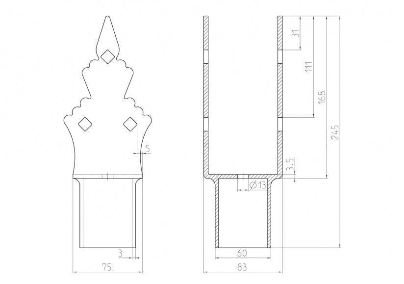 Extension for ground screw decorated Zn U75x75x165x60mm YFB21ZN075X075X165X60