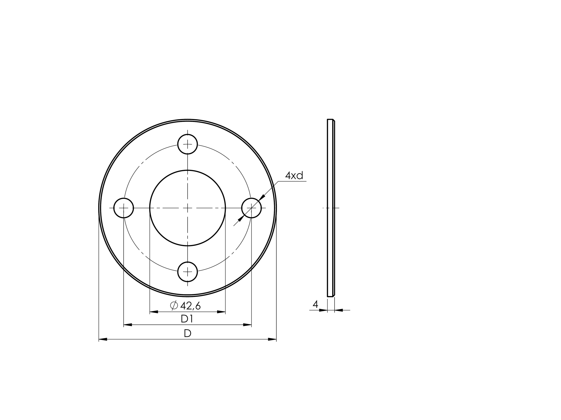 Welding blind plate AISI304, D100/42,4mm, 4xd11, t A/1954-100x42x4-N
