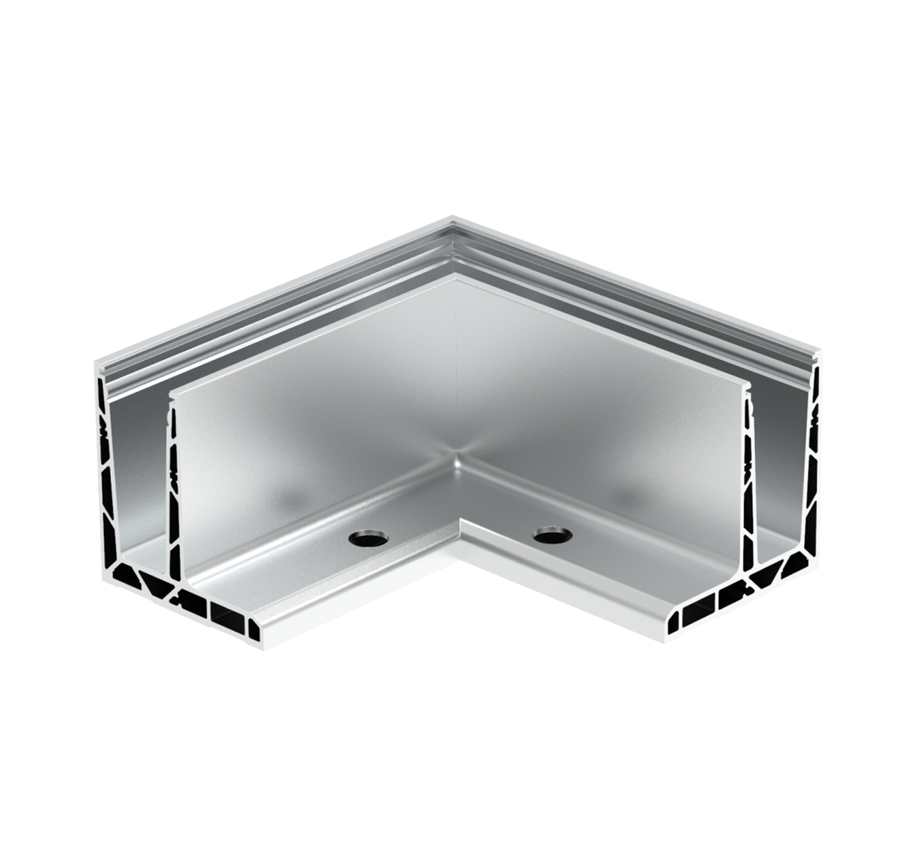 External 90° corner for Al. anchoring profile AL/0018-...-S-E, anchoring from the top to the floor.