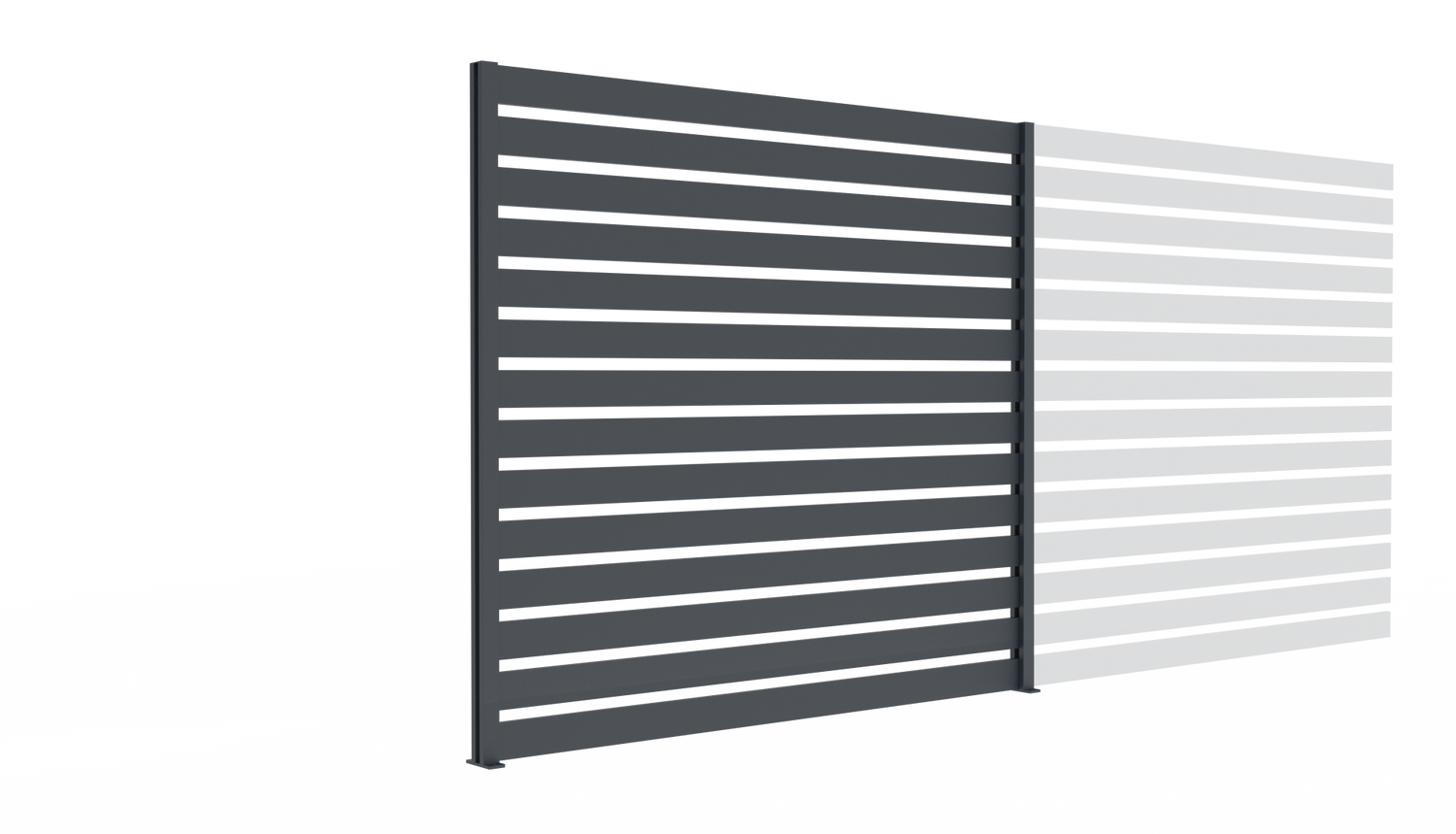 With a height of 1850mm and a width of 2000mm, the assembly consists of 20x100mm aluminium slats and a PRO70x70 post. This modern design offers a balance between privacy and openness, allowing light and air to pass through, while the assembly maintains a sense of security and elegance. An ideal solution for the exterior of homes, gardens or commercial spaces.