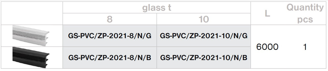 PVC glass support 10x3x100mm GS-PVC/G-2021/N/B