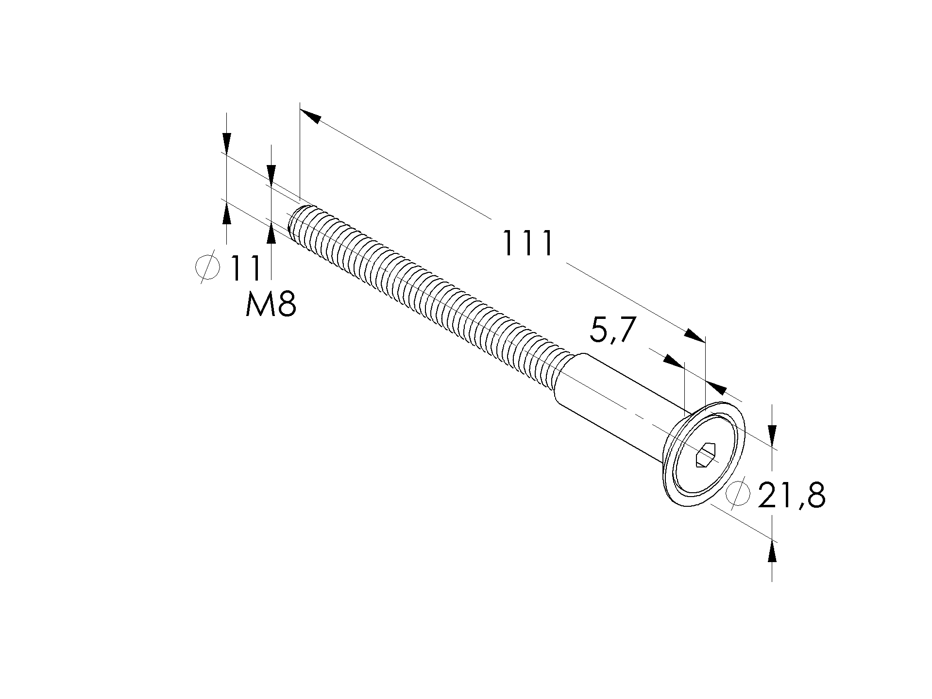 Taper screw with taper washer, M8, AISI316,SW=T40 W-DIN 7991-A4 M8x20-P