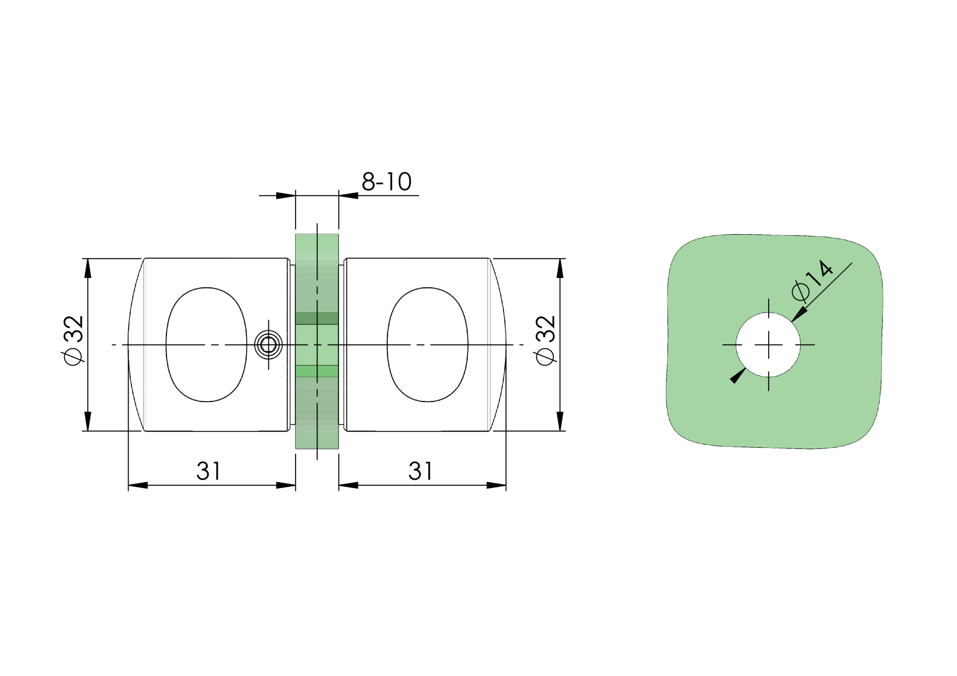 Brushed back-to-back knob AISI 304, K320, D32mm GS-304/M-924/S
