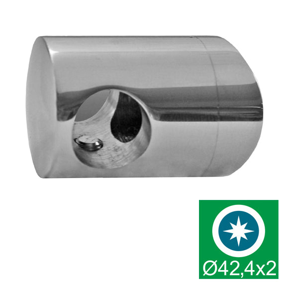 Stainless steel crossbar holder D12mm, polished, for tube D42,4mm. Material AISI 304, K320