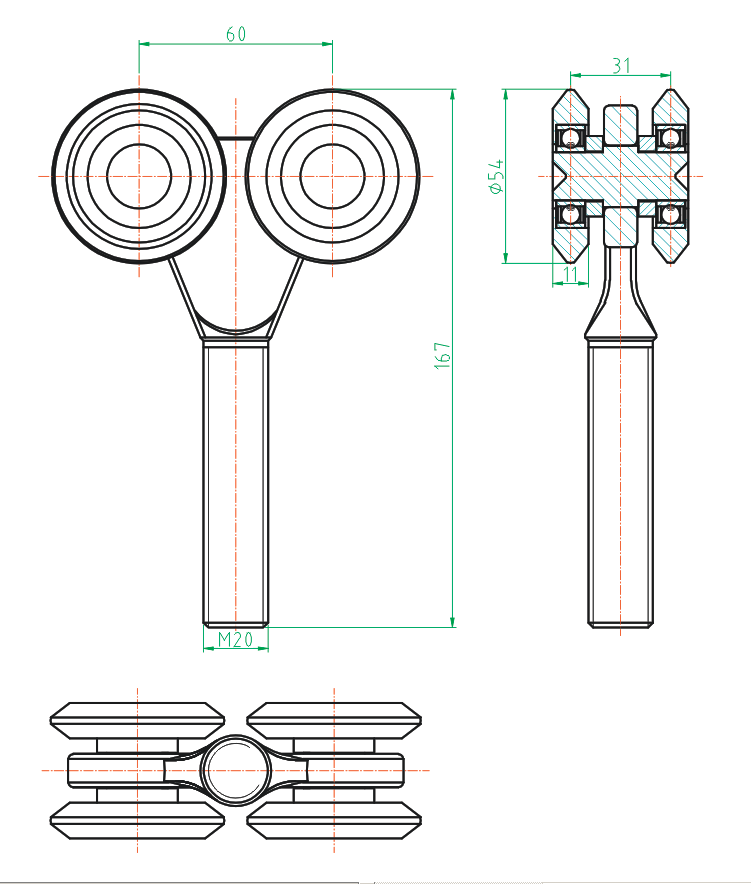 Gate roller track Zn, profile 42x54mm H/08-42x54-NYLON