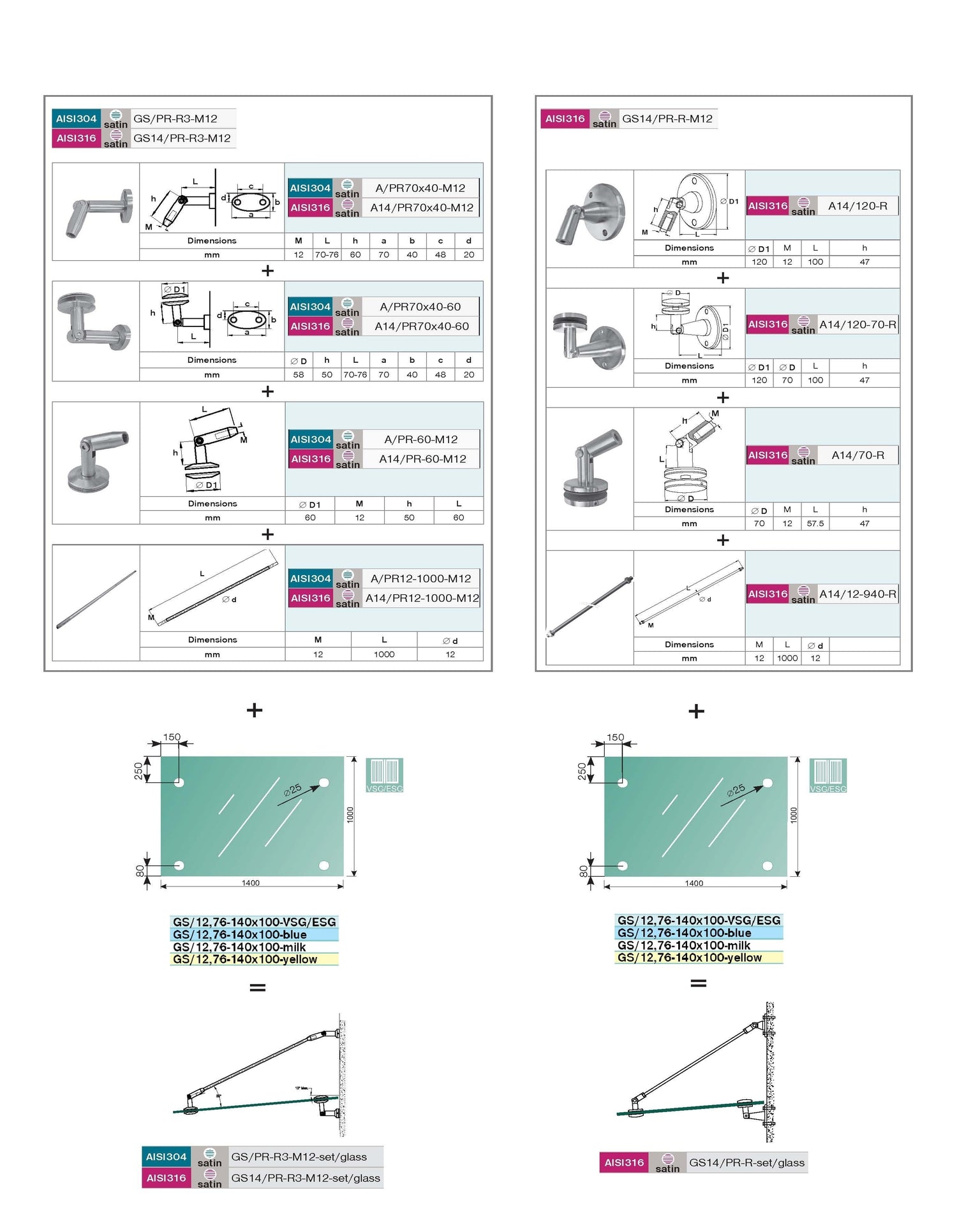 Canopy system AISI304, M12mm GS/PR-R3-M12-set-1400