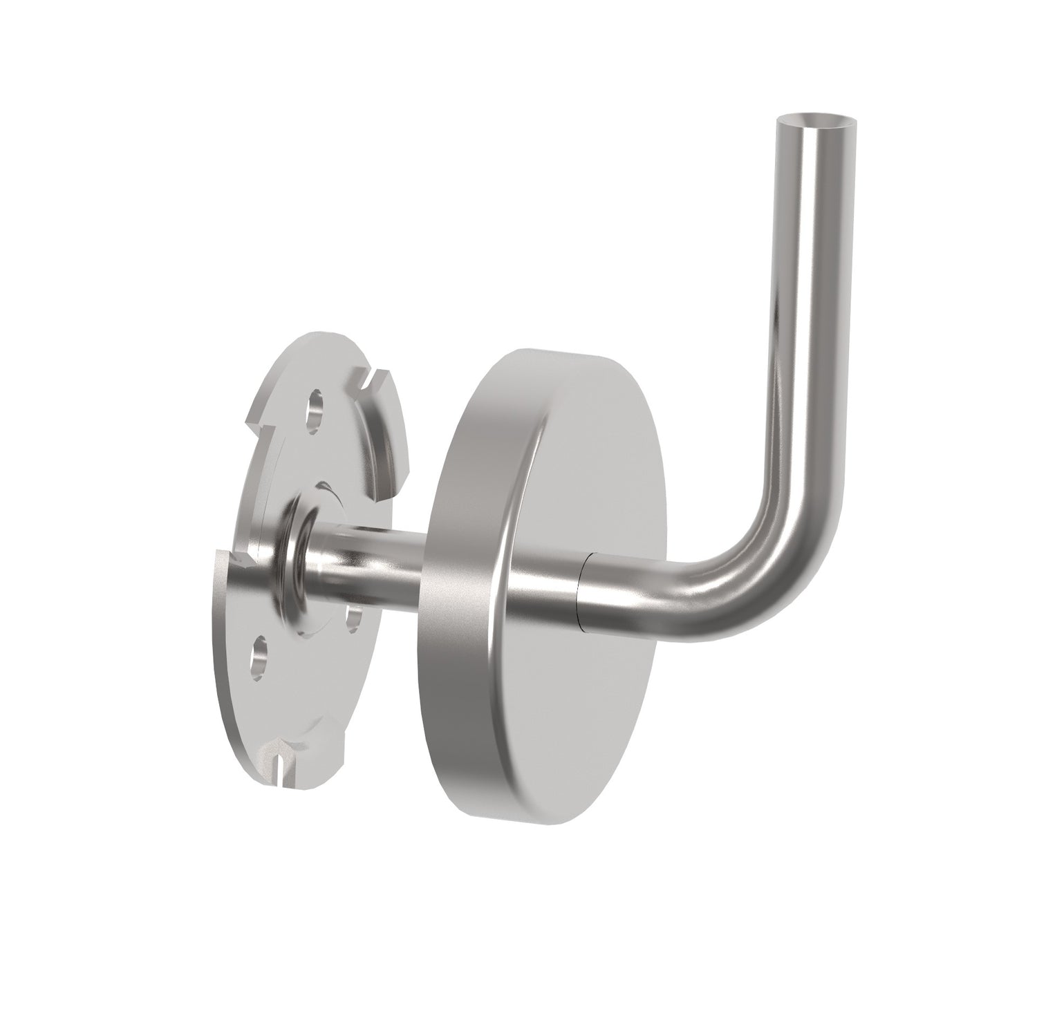 Wall-mounted handrail holder with cover rosette. Anchoring the holder to the wall using three holes on the flange - mounting joint. Without a tray for the handrail - mounting joint.