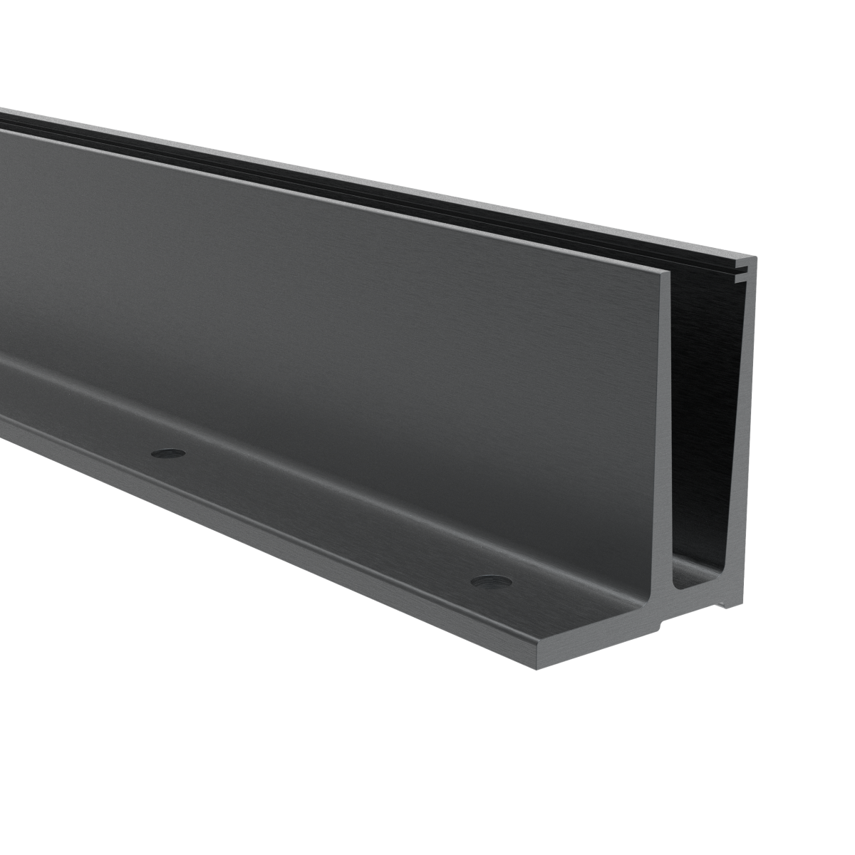 AL anchoring profile for glass, top anchoring, surface brushed, powder-coated R7016, without accessories.
