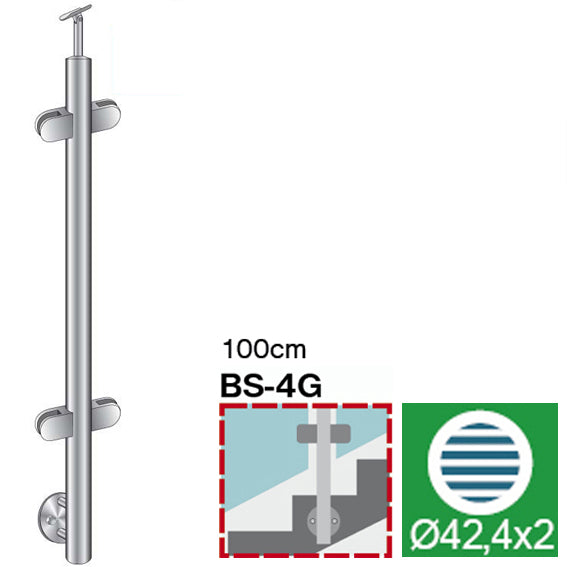 Material: Stainless steel AISI 304, Surface finish: Satined, Type/Height: Stair/1000mm, Filling: Glass, Glass t: 8,76, Model: Model 22, Anchoring: Side