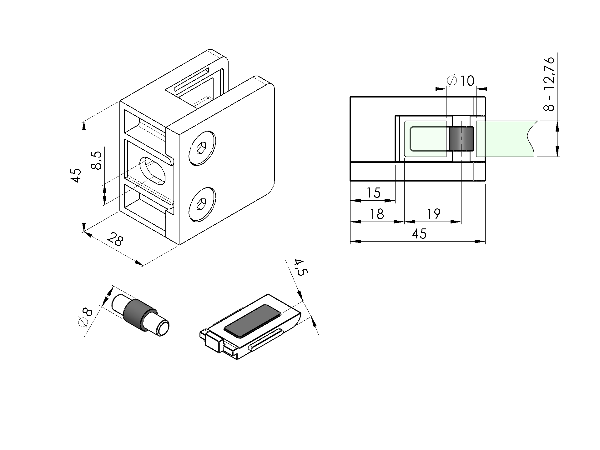 Glass clamp - set A/23KP-042-set4