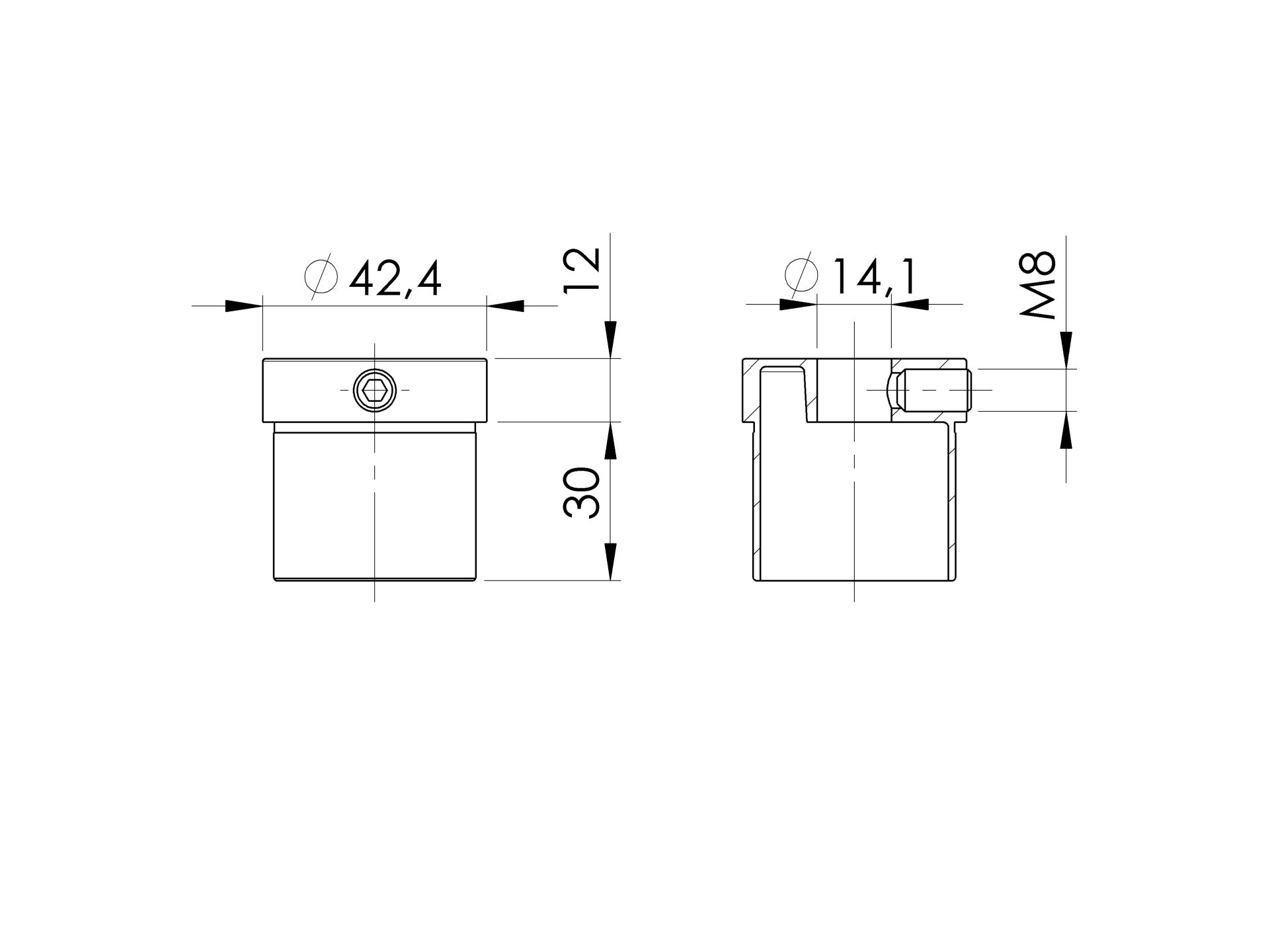 Material: Stainless steel AISI 304, Surface finish: Satined, Post: D42,4x2, Handrail: D42,4x2, Phi: 42,4x2,0