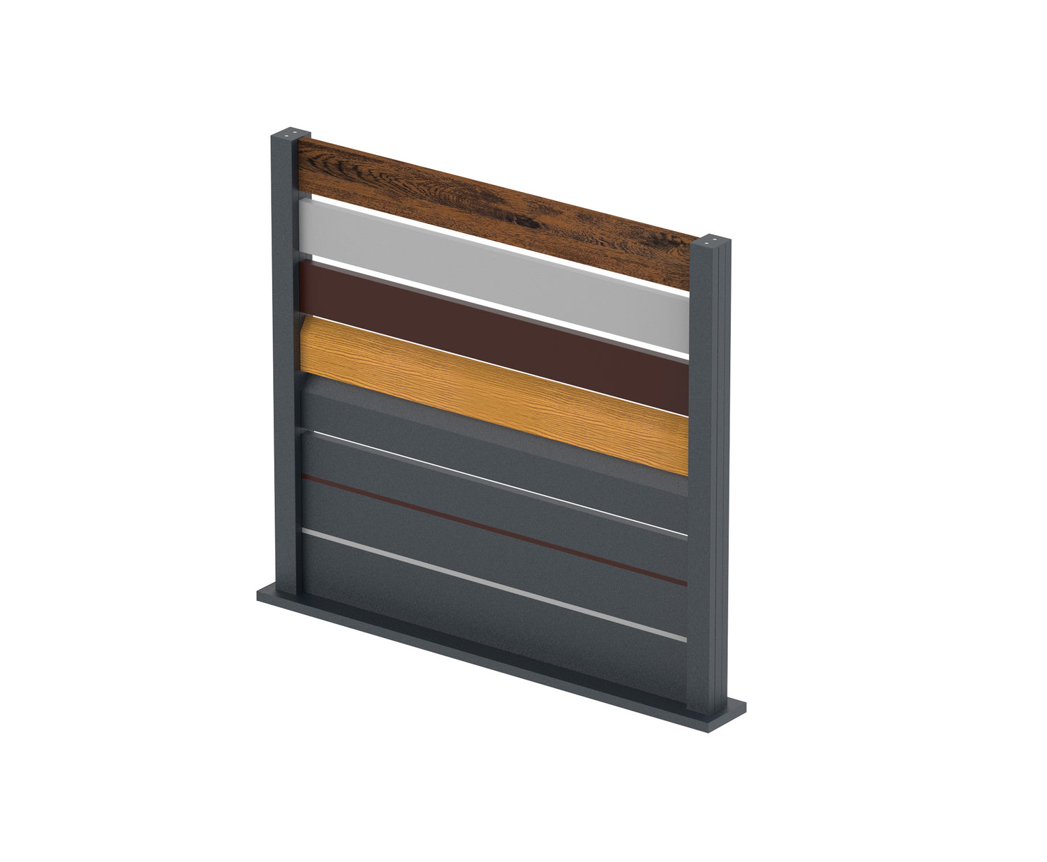 L'échantillon sert a démontrer la qualité et le design des panneaux de clôture, étant approprié pour des fins d'exposition, la comparaison des couleurs ou comme élément modele pour les clients lors du choix de la solution de clôture idéale.
