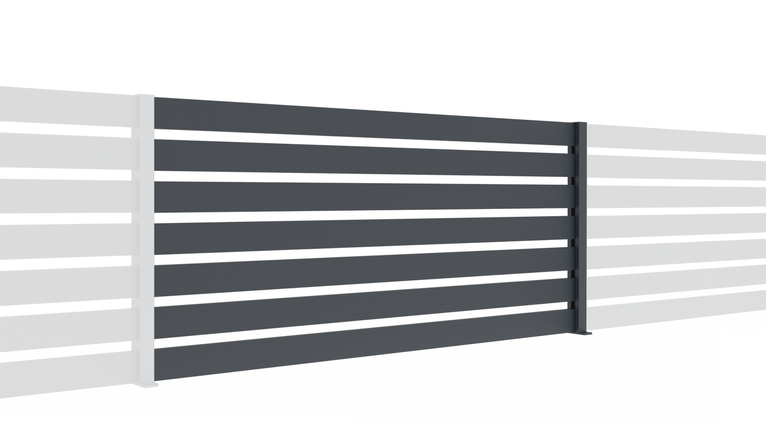 L'ensemble d'une hauteur de 925 mm et d'une largeur de 2000 mm est composé de lames en aluminium de 20x100 mm et d'un poteau de 50x60. Ce design moderne offre un équilibre entre intimité et ouverture, permettant le passage de la lumiere et de l'air, tout en conservant un sentiment de sécurité et d'élégance. Solution idéale pour l'extérieur des maisons, jardins ou espaces commerciaux.