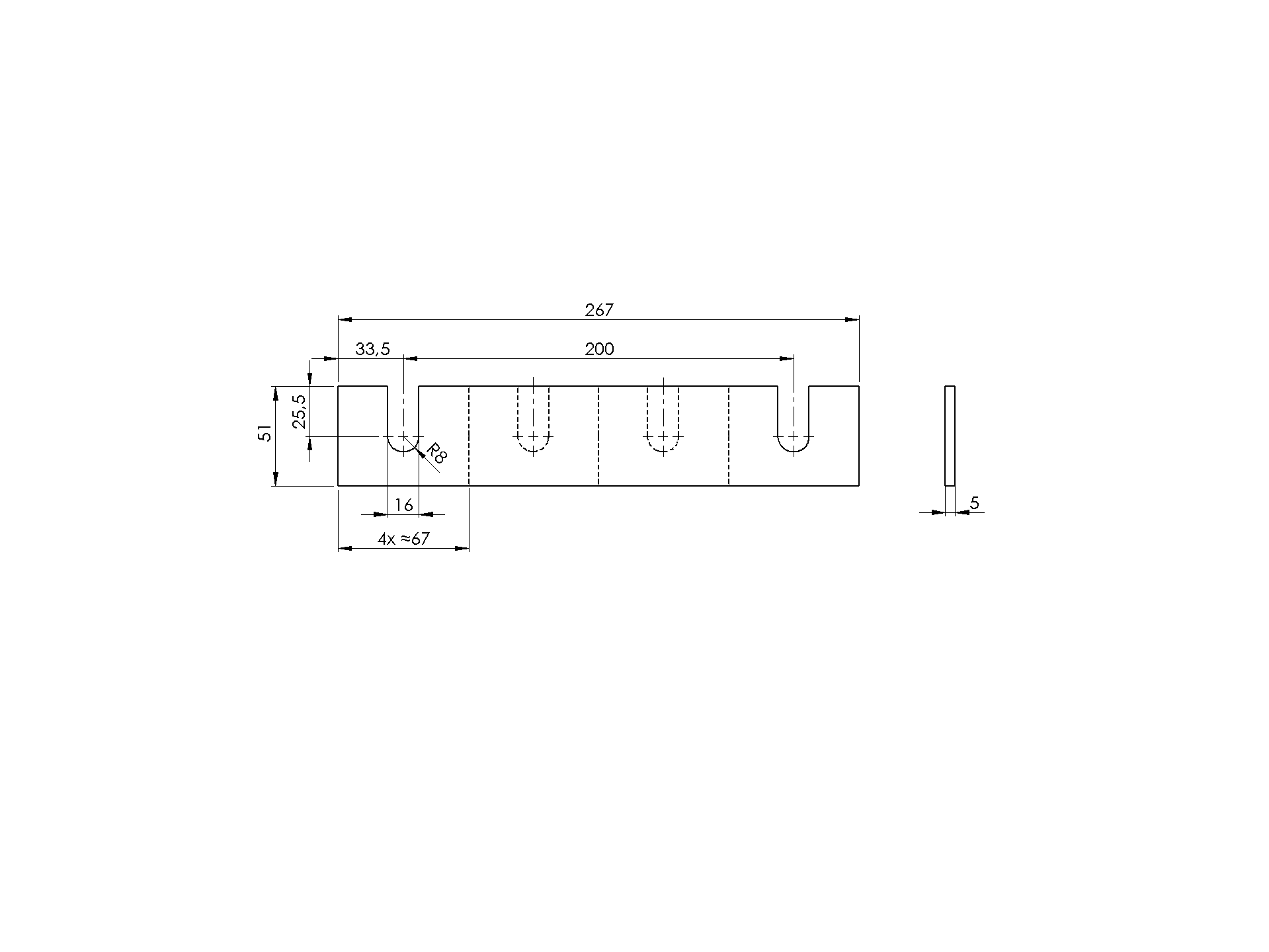 Profilé en aluminium - montage supérieur AL/0004-5000-S-E