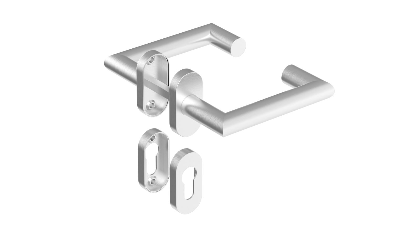 Poignée avec plaque pour cylindre - 1 paire - acier inoxydable brossé, possibilité de rotation du mécanisme a ressort pour changer le sens d'ouverture