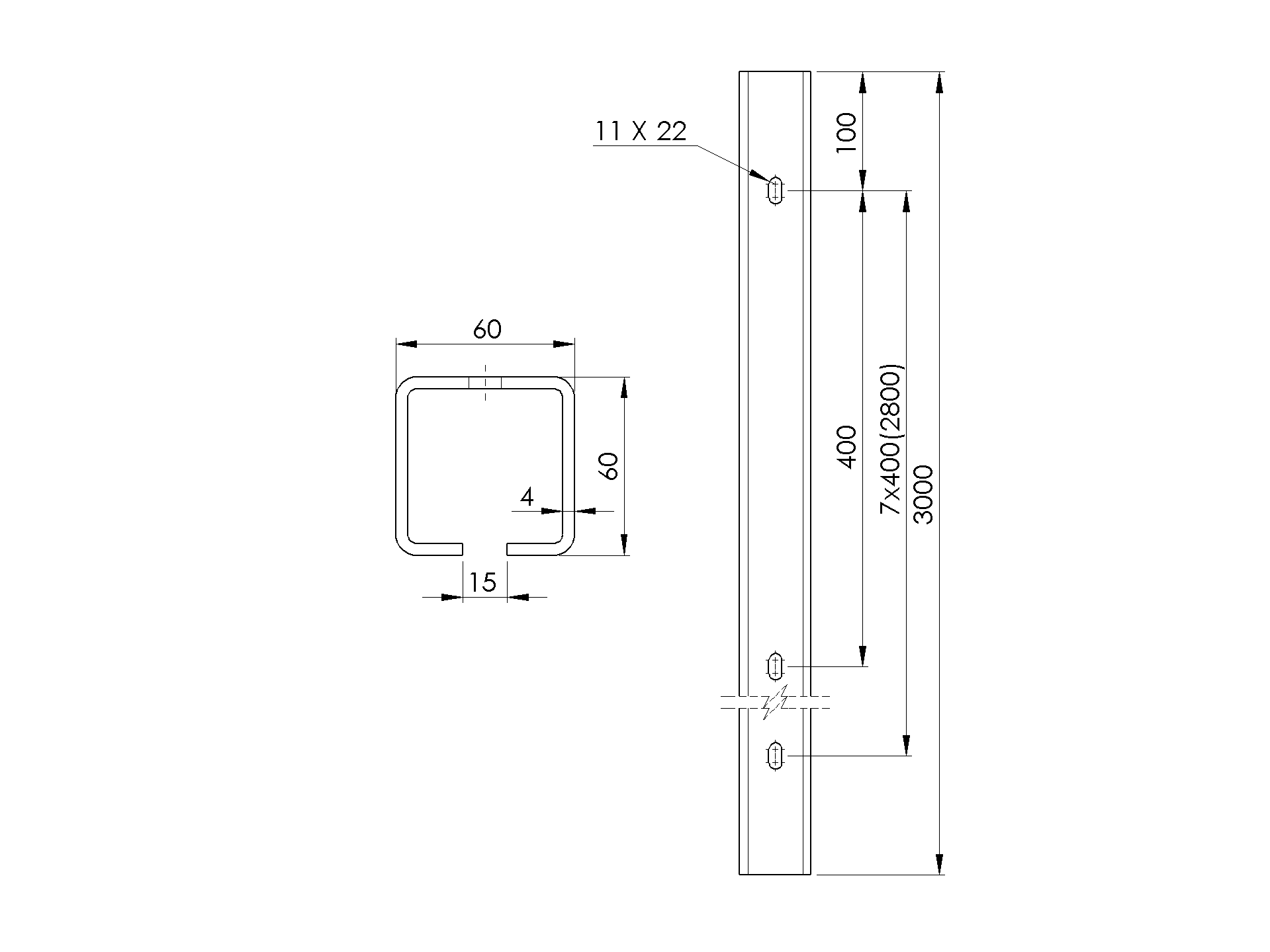 Kit pour portail coulissant jusqu'a 4m, Fe, 60x60mm SV-60x60 clasic