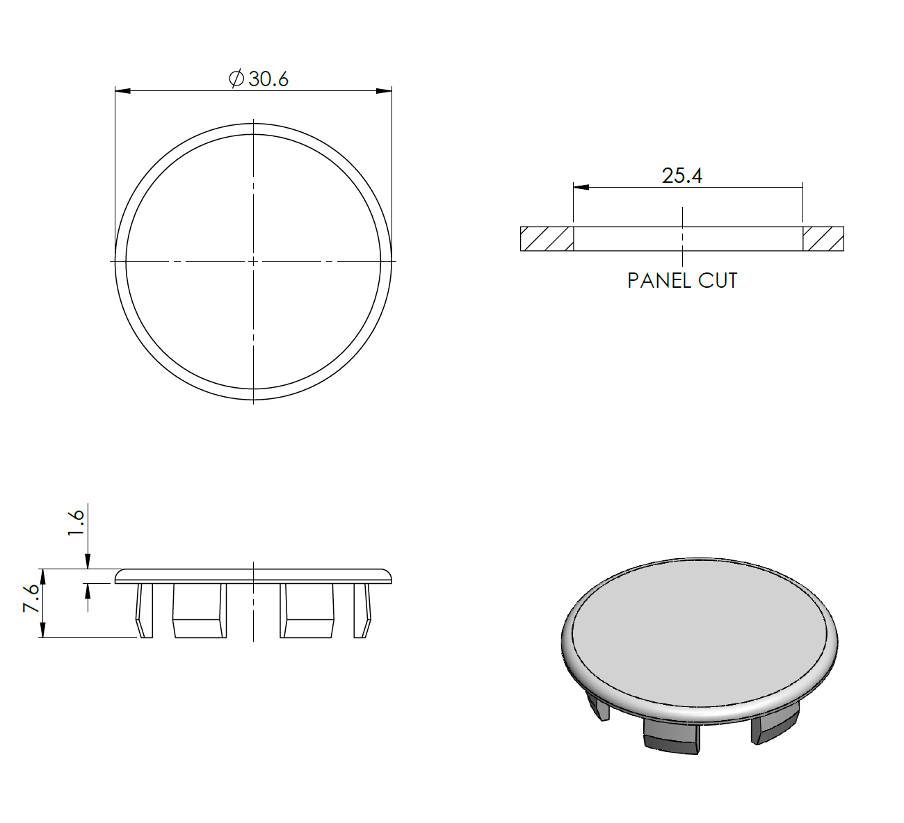 Embout pour profilé AL, PVC, D25mm A24/0005-007